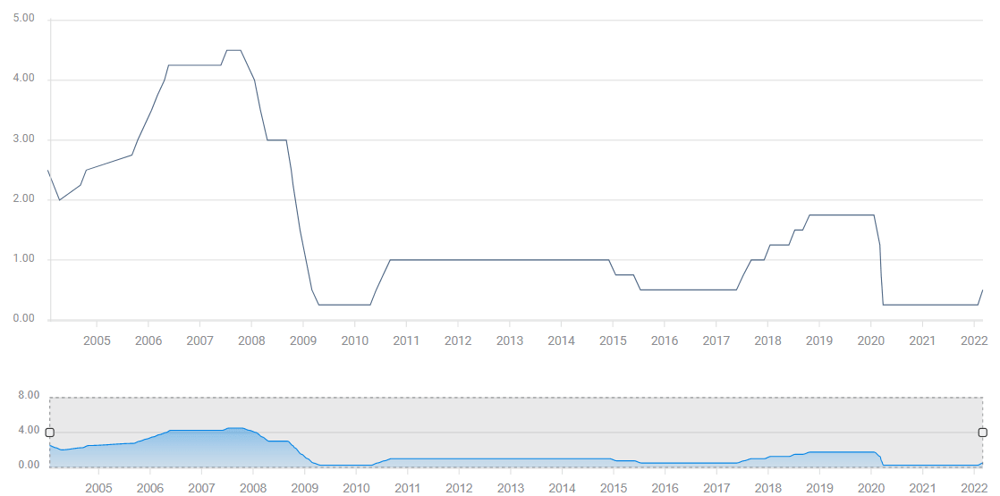 Canadian inflation has more than doubled in 12 months from 2.2% in March of last year to 5.7% this February, nearly a three-decade high. The BoC core index has soared, more than tripling from 1.4% to 4.8%.