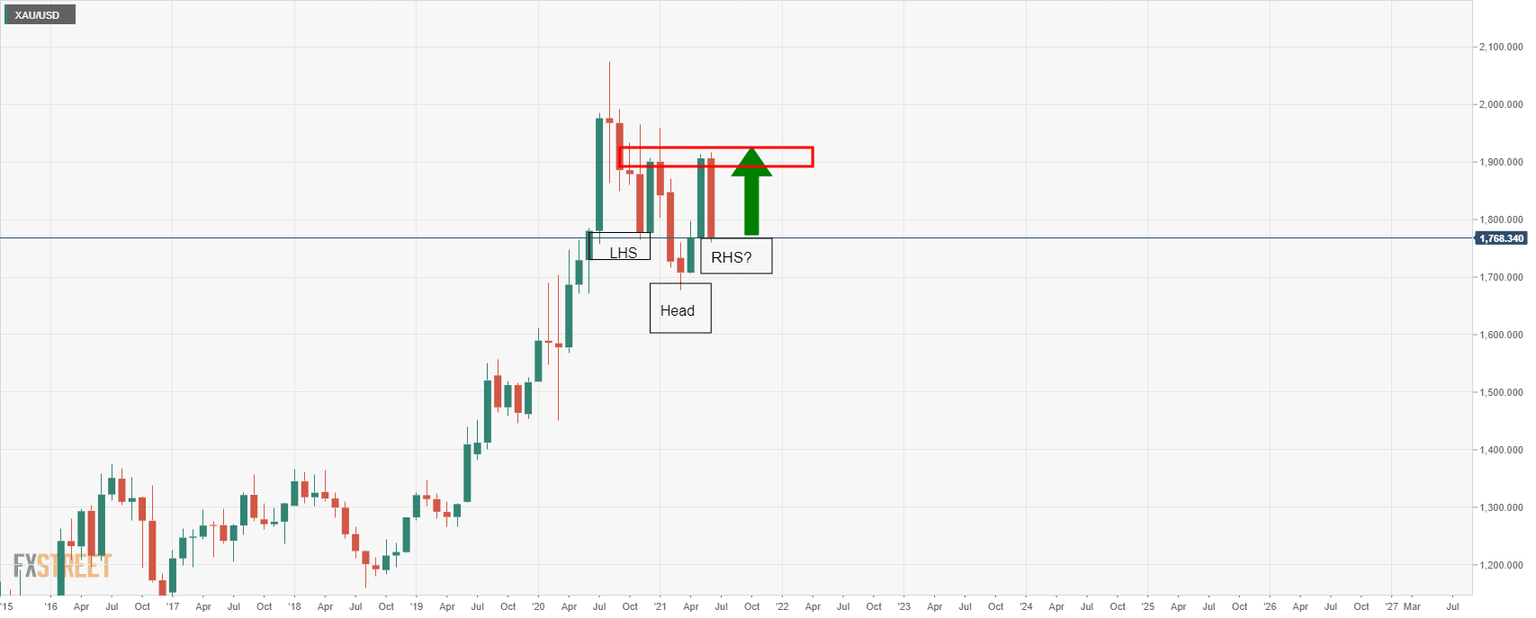 The monthly reverse head-and-shoulders is a bullish chart pattern that could be in the making if the price continues higher next month.