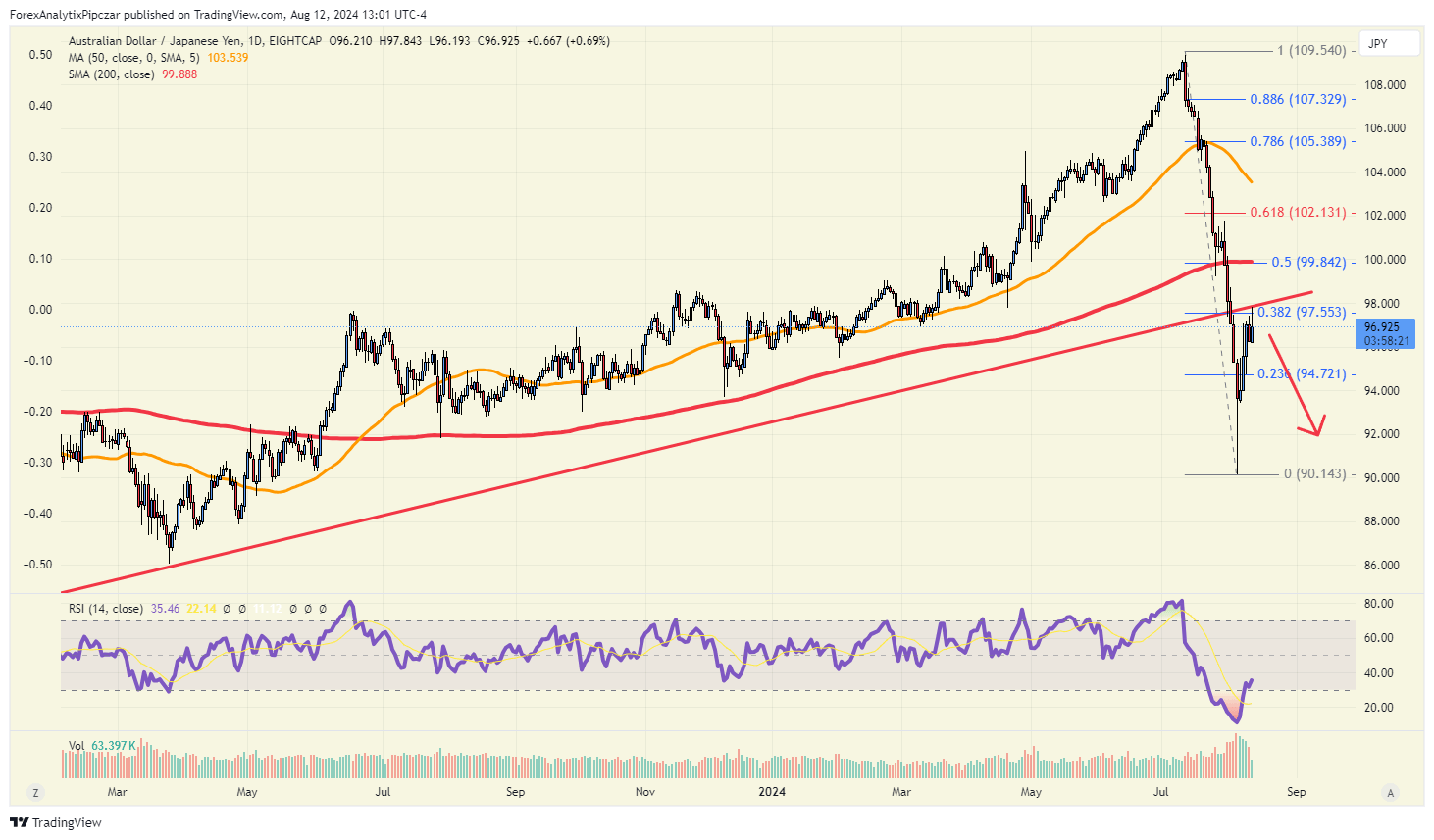 The AUDJPY hit major resistance and rejected it today. The high today was 97.84, and the 38% retracement of the move lower since the July high to August lows is at 97.55. Also, the underside of the broken trend line (from 2020) was hit today as well.