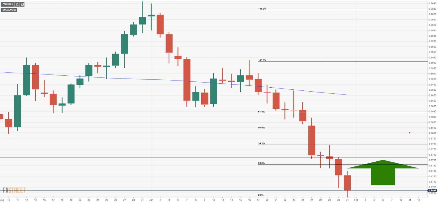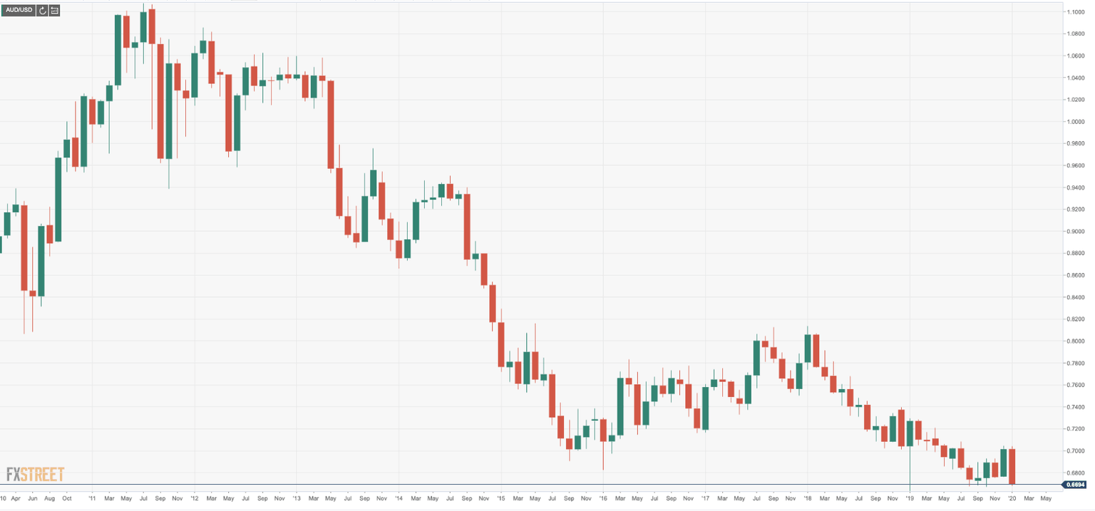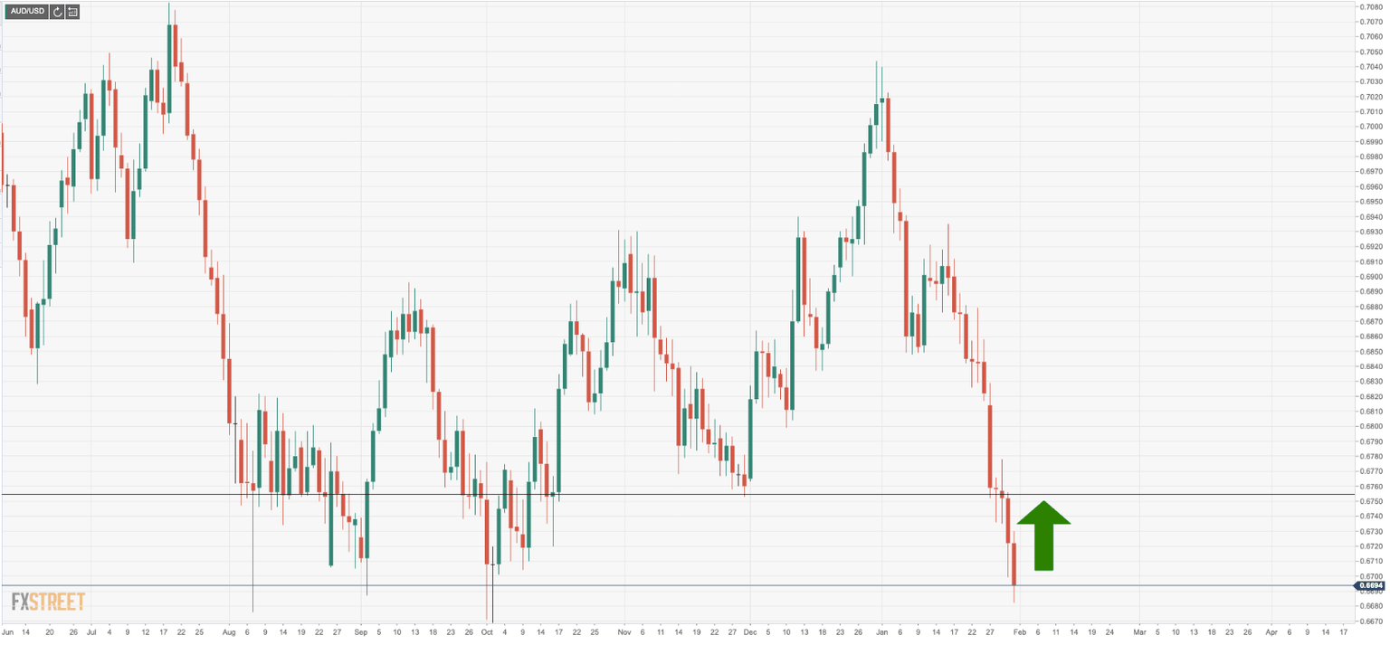 AUD/USD has dropped almost 5% since the start of the year and has moved to the lowest level since of October 2019, a critical support structure which could be make or break of the pair for weeks ahead. The prior supports have not held up and there have been no long set-ups signalled on the four-hour charts while bears have been in control all the way, bar the occasional correction on glimmers of hope from Australian data ahead of the Reserve Bank of Australia this week.