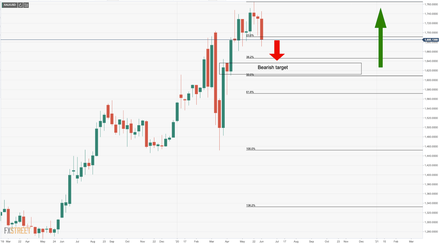 The price of gold has continued within the bearish trajectory highlighted in last week's analysis here: Gold Price Analysis: XAU/USD bearish case for the contrarians out there.