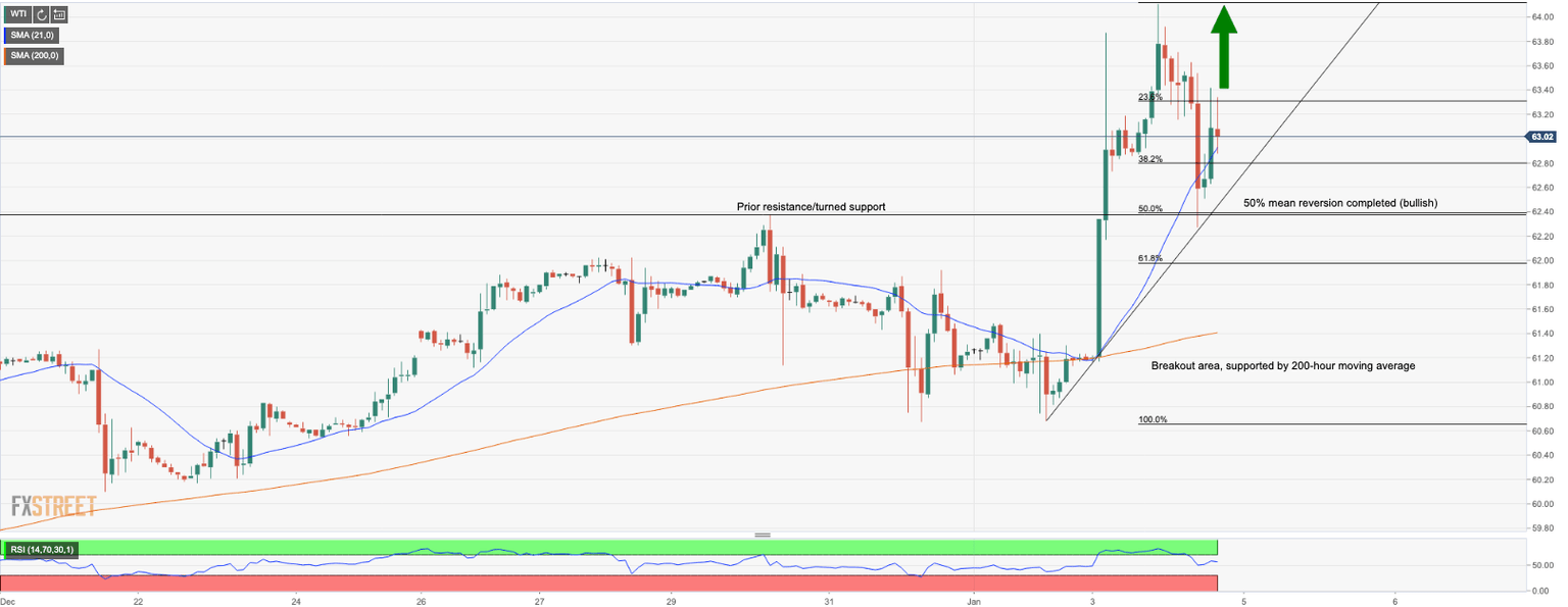 - Price is set to move higher towards 2019 highs at 66.58.