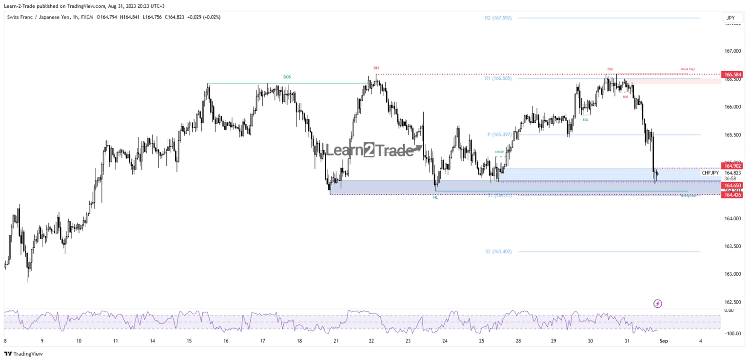 From the technical point of view, the CHF/JPY pair crashed after failing to take out the 166.58 resistance. Now, it has reached the 166.65 static support. The 164.42 stands as a critical downside obstacle. As long as it stays above these support levels, the pair could develop a bullish pattern. False breakdown may announce a new bullish momentum.