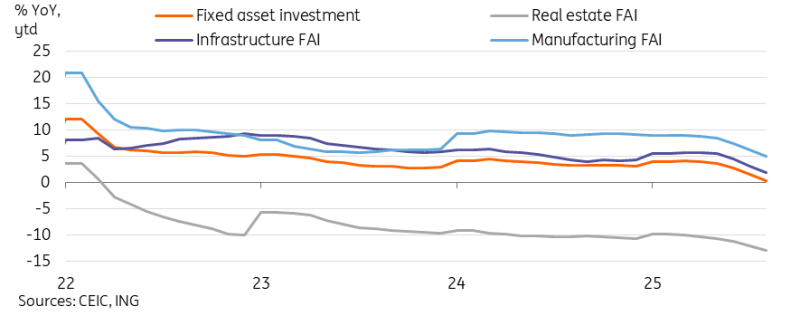 China's economic activity has slowed across the board so far in 3Q25