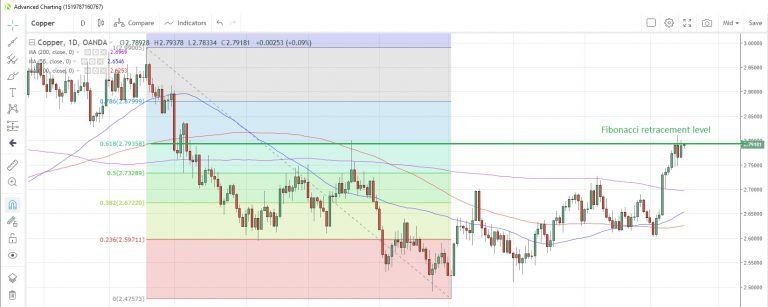 The seven day rally was halted on Friday just above the 61.8% Fibonacci retracement of the April 17 to September 3 decline at 2.7936. Copper is now at 2.7918.