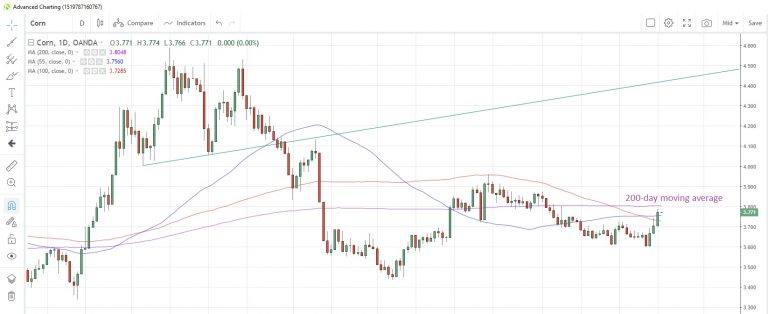 CORN prices rose for a third straight day yesterday, reaching levels not seen in 5-1/2 weeks. The commodity looks to be testing resistance at the 200-day moving average at 3.8048, which has capped prices since November 6.
