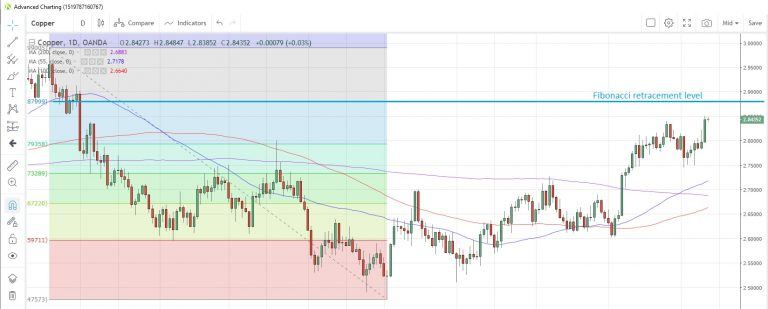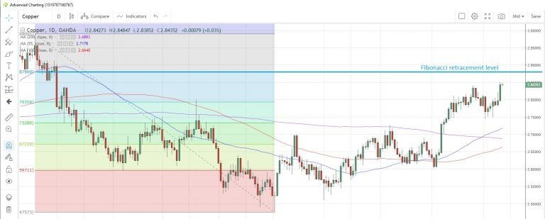 The metal is heading toward the 78.6% Fibonacci retracement of the April-September decline at 2.88, while the 100-month moving average is at 2.917.