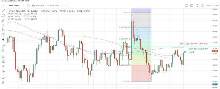 CRUDE OIL prices extended Friday’s gains yesterday, with West Texas Intermediate (WTI) hitting the highest since September 24 and testing both the 200-day moving average at $57.19 and the 50% retracement level of the September-October decline at $57.22. WTI failed to close above the 200-day moving average, and that average has now capped prices on a closing basis since September 26.