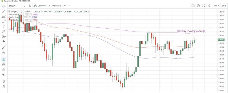 SUGAR prices look set to climb for a fourth consecutive day today as they head toward the 200-day moving average at 0.1203. This moving average was last tested on October 2 and it held on a closing basis that time. It was followed by a three-week slide which saw almost 6% wiped off prices. The moving average has remained intact on a closing basis since July 3. Speculative investors turned net buyers for the first time in four weeks, the latest CFTC data show.