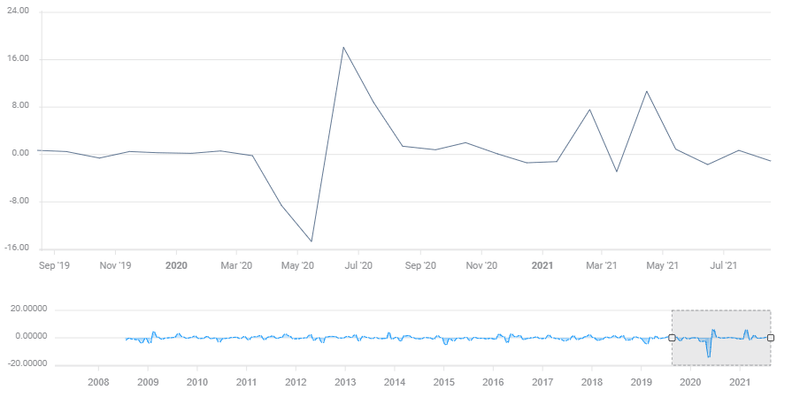 The Michigan Index provided a warning that all might not be well with the recovery. Consumer Sentiment unexpectedly plunged to 70.3 in August, below the prior pandemic low of 71.8 from last April and the weakest in almost a decade. The index had been expected to be unchanged from 81.2 in July.