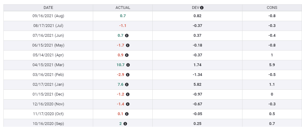 Sales ex-autos were even stronger, adding 1.8% on a -0.2% prediction and the same July decrease. The difference between the two figures largely stems from a shortage of new cars with production restricted by a scarcity of computer chips.