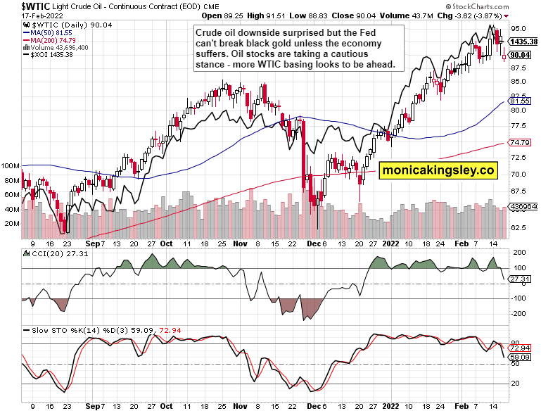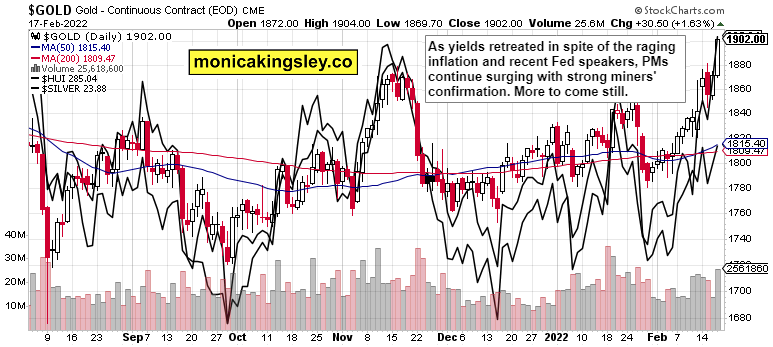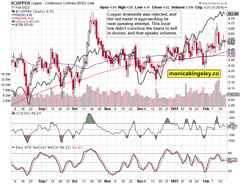 With gold at $1,900 again and silver approaching $24, copper‘s fate is also brightening – the miners‘ continued outperformance is a very good sign. With crude oil taking a breather, the inflationary pressures aren‘t at least increasing, but don‘t look for the Bullard or other statements to defeat inflation – I‘m standing by the 4-5% official rate CPI data for 2022 (discussed in yesterday‘s summary).