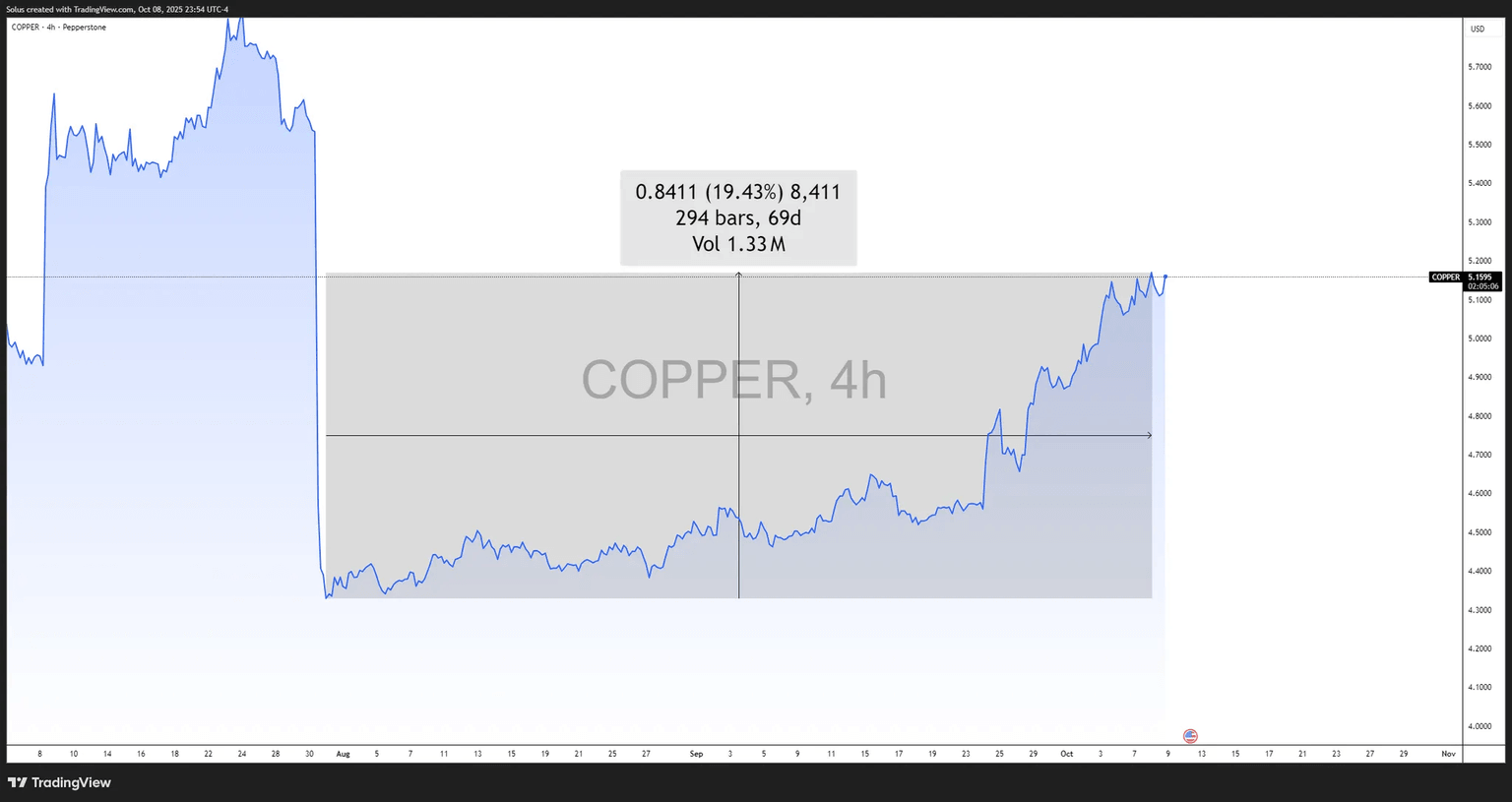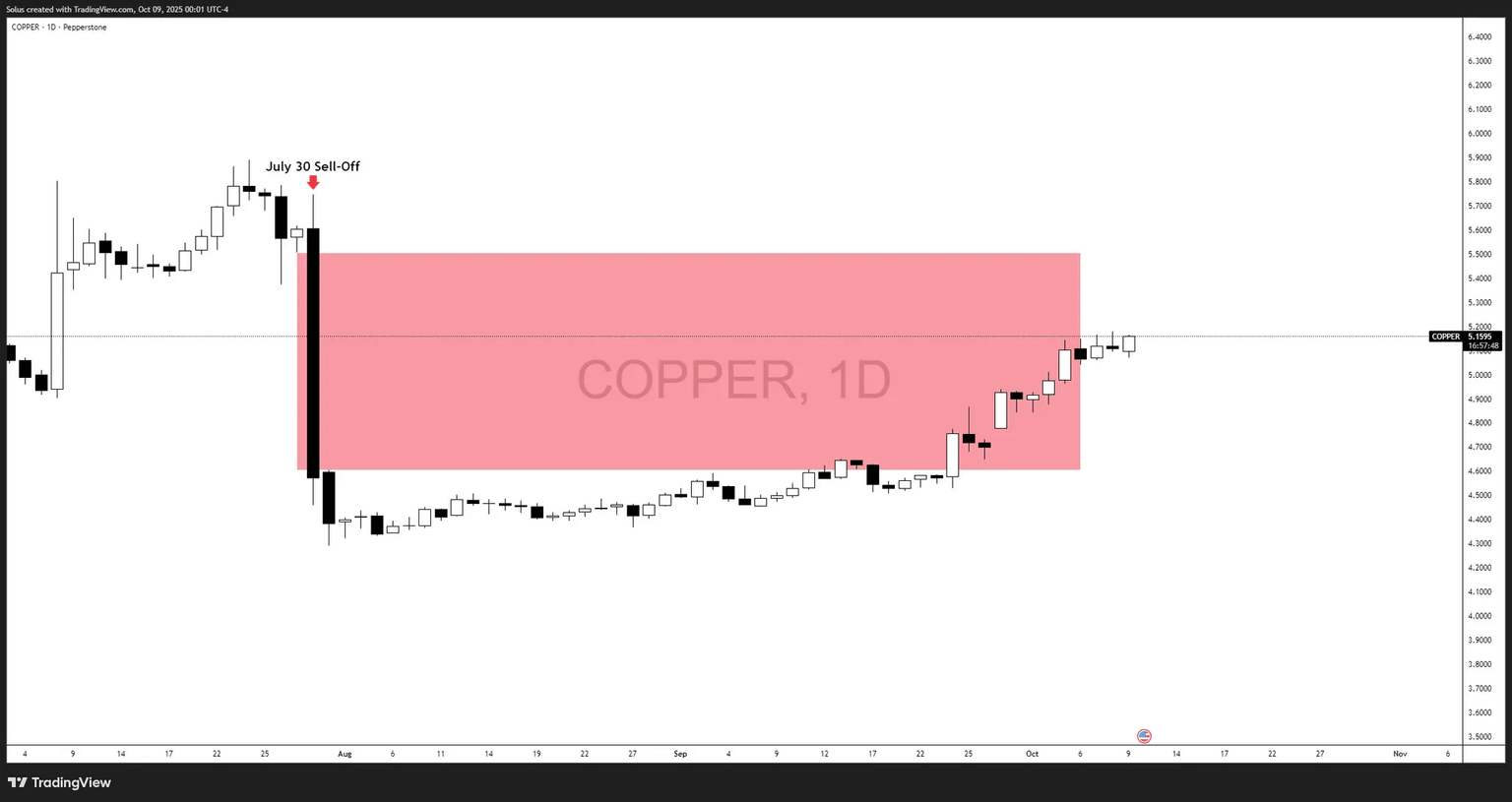 Copper’s resilience since August reflects a quiet macro inflection: the global narrative flipped from “cautious slowdown” to “measured optimism.”