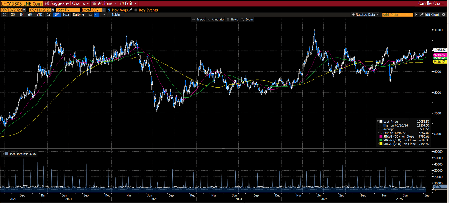 The price of copper has once again breached $10,000 a tonne. This is significant, the copper price is often considered a proxy for global growth, and it has only ever breached this level a handful of times, most recently in March. The question now is, will the price be able to stay at this level, and what does it mean for other asset classes.