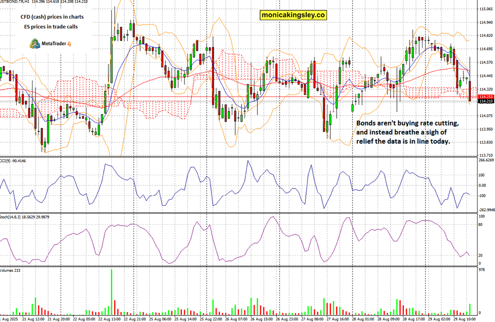 S&P 500 extended swing clients‘ gains, and intraday one had theirs protected before te aftermarket weakness. Ask yourselves though whathas changed and what has not, how this affects your trading style. Swing traders needn‘t sweat it, while intraday better cash in gains while they‘re there, just like clients did yesterday – core PCE and clues talked in today‘s video