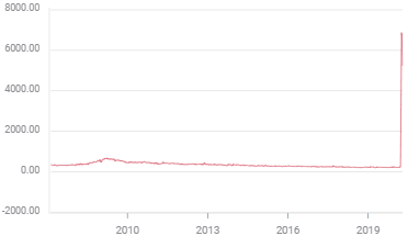 No previous recession produced jobless claims and unemployment on a scale or with the rapidity of the past month. In the 2008 financial crash it took 11 months after claims turned higher for them to rise from 349,000 in April to 665,000 in March 2009. Last month claims went from 282,000 in the week of the 14th to 3.307 million, 6.867 million, 6.615 million and 5.245 million the next four weeks. The highest four week average in 2009 was 659,250, this week it was 5.509 million.
