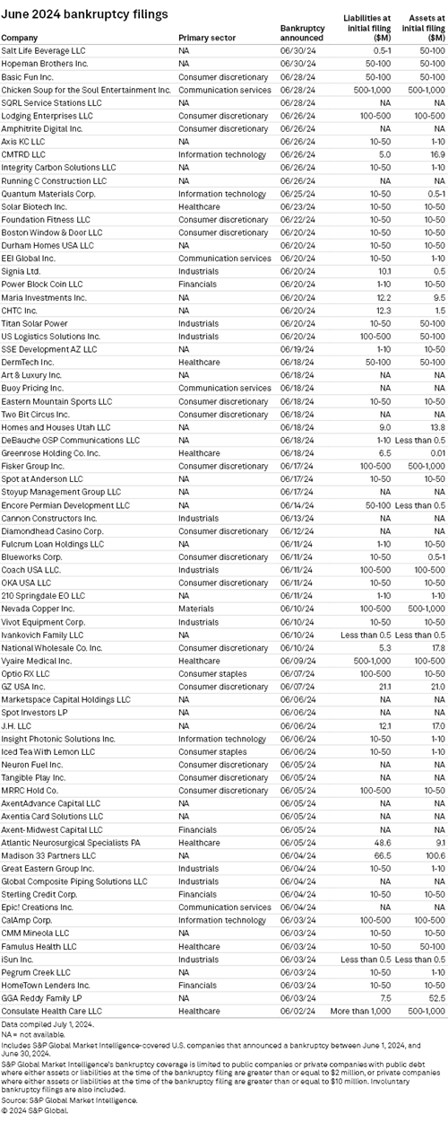 According to S&P Global, 55 of the corporate bankruptcies in the first half of 2024 fell into the consumer discretionary category. Sixteen of those filings were in June.