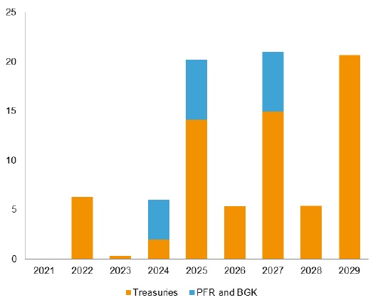 Polish Investment Fund (PFR) issued bonds worth total of PLN 12bn (PLN 10bn in 7Y paper and PLN 2bn in 10Y paper). State-owned BGK sold PLN 8.5bn. Total volume of PFR issuance stands at PLN 62bn. Issuance will be used to finance Financial Shield program, worth PLN 100bn.