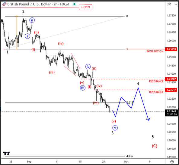 GBP has turned down in September after BoE did not decide for highe rates. Looking at the GBPUSD, the pair is making some nice reversal, it looks like the first leg of a three-wave corrective move into wave 4 which can be headed up to 1.2304-1.2368 resistance, where new sell-ers can show up, ideally next week. The reason why this can be an important resistance area is former wave four, the 38.2% Fibonacci retracement level, and plus wave 2 distance. The invalidation level is at 1.2549, as long it holds trend is down.