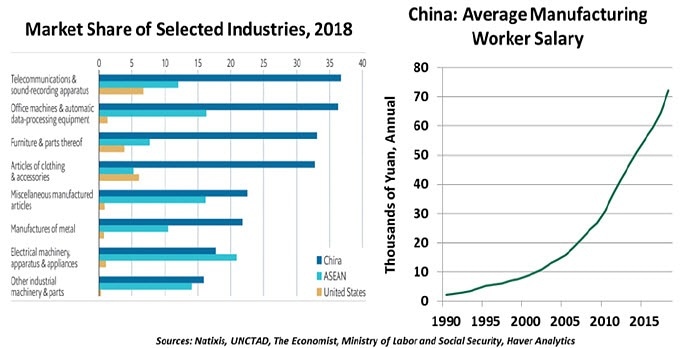 As tariff fears took hold, producers found shifting production out of China to be a difficult and expensive proposition. JIT has made supply chains difficult to move. A determined manager could close a factory in China and reopen in another country, but rebuilding a tightly integrated supply chain takes years of coordination. These efficiencies have made China a sticky destination, and it has been holding on to production even as its own labor costs have risen. China is no longer the cheapest place in the world to run a factory, but it remains the most efficient.