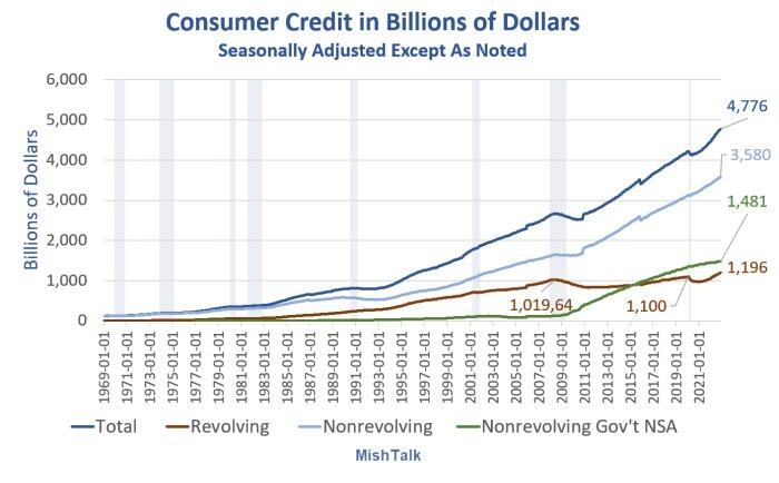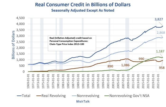Let's dive into the Fed's latest report on consumer credit in both nominal and real (inflation-adjusted) terms for clues on the health of consumers.