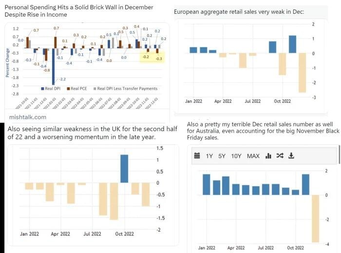 Consumer spending hit a brick wall in the US, EU, UK and Australia.