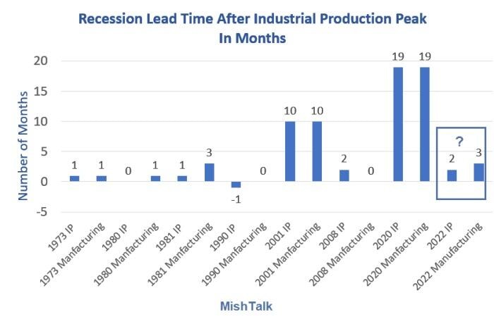 But given the historic lags, data is not inconsistent with the idea that a recession has already started.