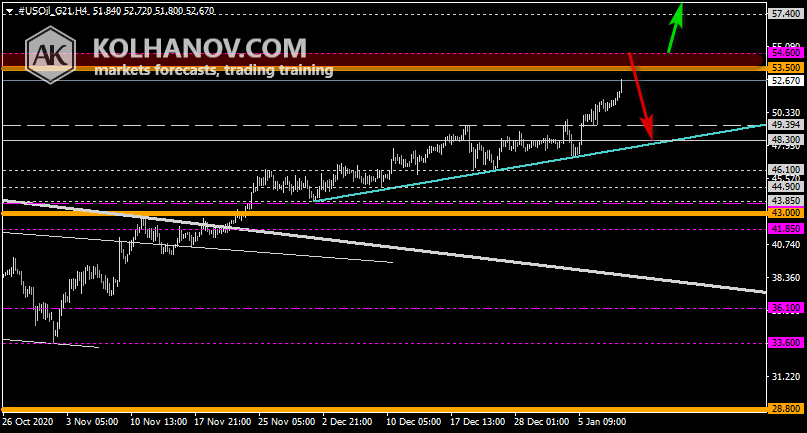 The uptrend may be expected to continue in case the market rises above resistance level 53,50, which will be followed by reaching resistance level 57.40.