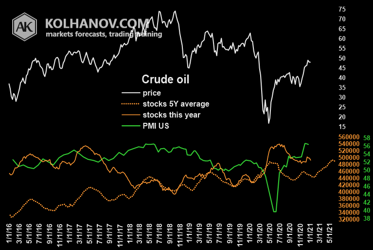 Difference between supply and demand shows fair price between the levels $53.