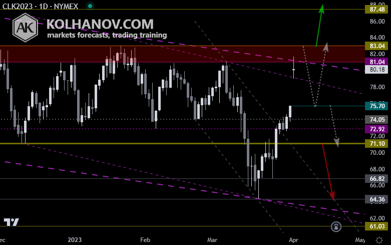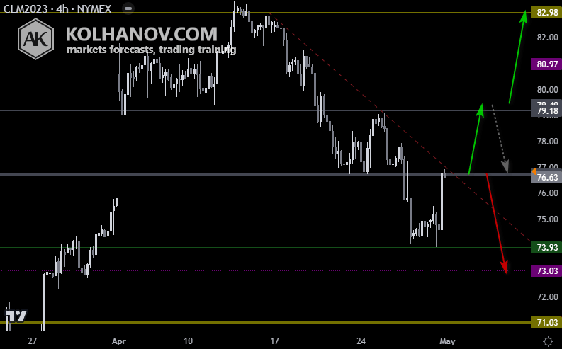 Crude Oil is likely to move down to the 73,03 level