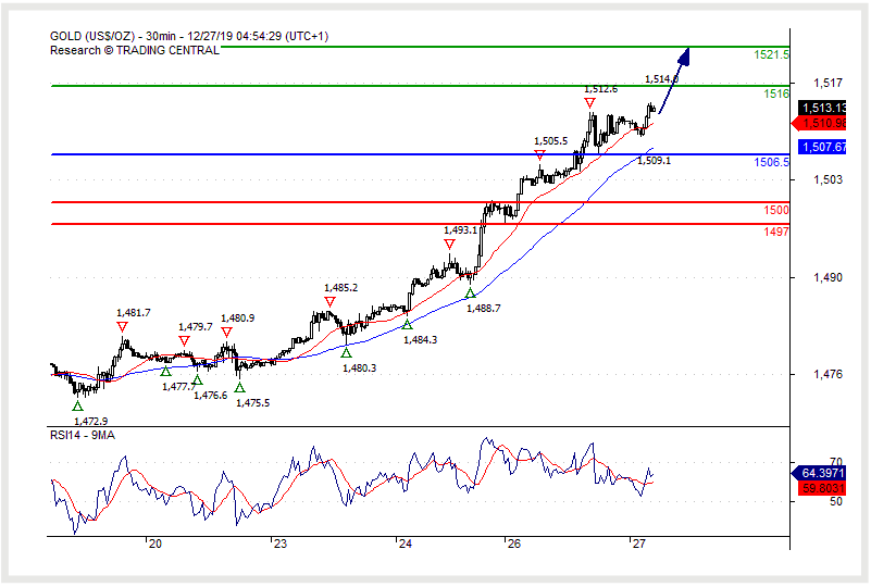 Long positions above 1506.50 with targets at 1516.00 & 1521.50 in extension.