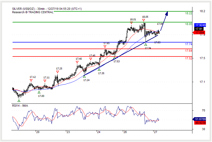 Long positions above 17.7400 with targets at 18.0500 & 18.2200 in extension.