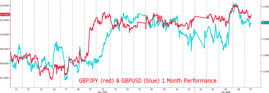 The first full week of 2026 has become entirely engrossed by geopolitics, much of which seems very unlikely to have a material impact on FX markets over the long run. But it has still generated an enormous amount of noise, to the extent that almost everything else has become crowded out. You can see the limited extent that the FX market has taken notice by the only modest rally in safe haven currencies such as JPY and USD.