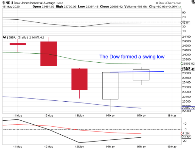 The Dow formed a swing low