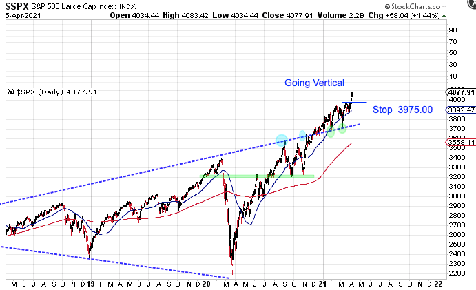 Since breaking above the 3975 resistance level stocks appear to be going vertical.