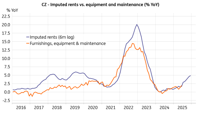 Further statistical inquiry confirms that the two series are cointegrated, showing strong long-term common dynamics. Granger causality exploration clearly confirms that changes in imputed rents precede and can predict changes in equipment and maintenance prices. These two time series simply show a textbook case for this type of strong relationship that would definitely be worth including in econometric exercises. Moreover, there is a straightforward economic reasoning to the relationship: you build more and acquire more properties during a booming housing market, you buy more equipment and request more maintenance, and prices of both rise as demand exceeds supply, at least temporarily. Ergo, the likelihood of even more potent core inflation than in our projection is not negligible.