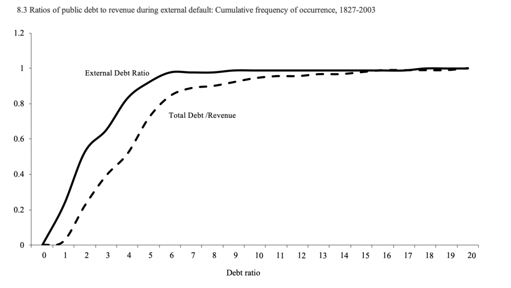 The first chart above shows that the U.S. budget deficit did not amount to double-digit negative figures for multiple years. Nonetheless, 2020 was different due to COVID-19. Stimulus spending and lower revenues from the recession could trigger a double-digit deficit. Total national debt is the other important metric that shows when government spending encountered a head-on collision historically. The U.S. is probably crossing a 100% debt-to-GDP ratio. This metric had a historical default probability of about 2.2%.