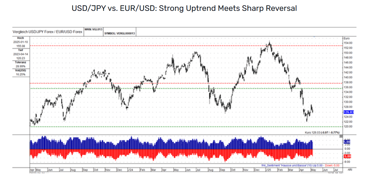 Monitor USD/JPY for Stabilization: The sharp decline in the relative strength of USD/JPY requires close monitoring. Look for signs of stabilization around the 126 level. A failure to hold this level could lead to further downside. Consider potential shorting opportunities if bearish momentum continues, but always implement tight stop-loss orders to manage risk.