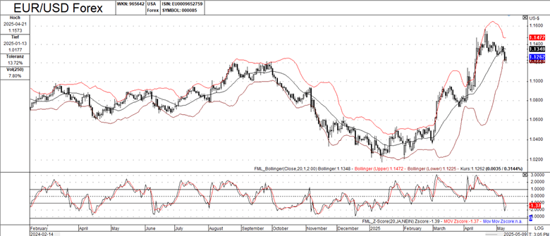 Several indicators (Bollinger Bands, Z-Score) suggest that the recent bullish move in EUR/USD might be overextended in the short term. Traders should be aware of the potential for a pullback or consolidation.