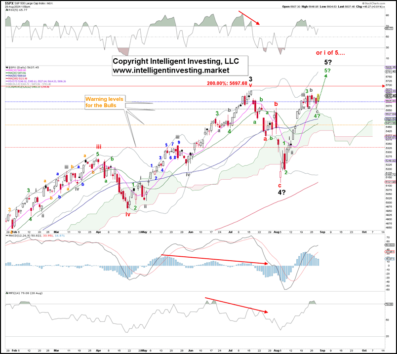 With that in mind, in our August 8 update, when the SPX was trading at ~$5300, see here, we were looking for a rally. Either as a five-wave impulse: