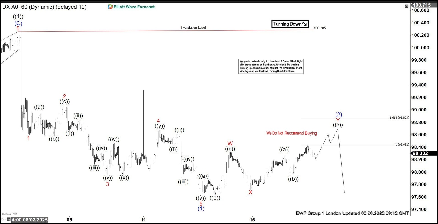 In this technical article we’re going to look at the Elliott Wave charts of Dollar index DXY published in members area of the website. US Dollar has recently given us Double Three pull back and found buyers again precisely at the equal legs area as we expected. In this discussion, we’ll break down the Elliott Wave pattern and forecast.