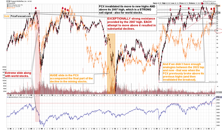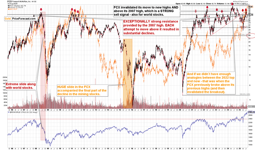 As those of you with Diamond or direct access to Gold & Energy Edge know, David Chen just went long FCX for a quick trade, and I’d like to emphasize that the move lower that I expect to see in FCX is of much greater magnitude. Even if FCX rallies to its upside target (which is still below $48), I think that FCX will still drop all the way down to $24 in the following months.