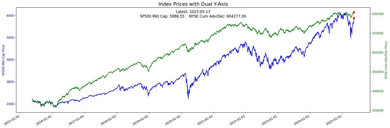 The NYSE Composite Cumulative Advance Decline Line made new all-time highs, which is bullish for the S&P 500.