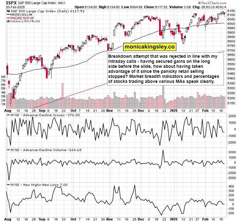 S&P 500 played hard games with retail, dumping below even 6,115 – but that was no obstacle as swing clients‘ gains were locked in for a roughly +50 ES pts gain – I was clear in yesterday‘s video uploaded as usual some 2hrs before the opening bell. Scary flush came, but I shared with you the follow up short video about S&P 500 prospects, will all clients, swing and intraday, capitalizing.