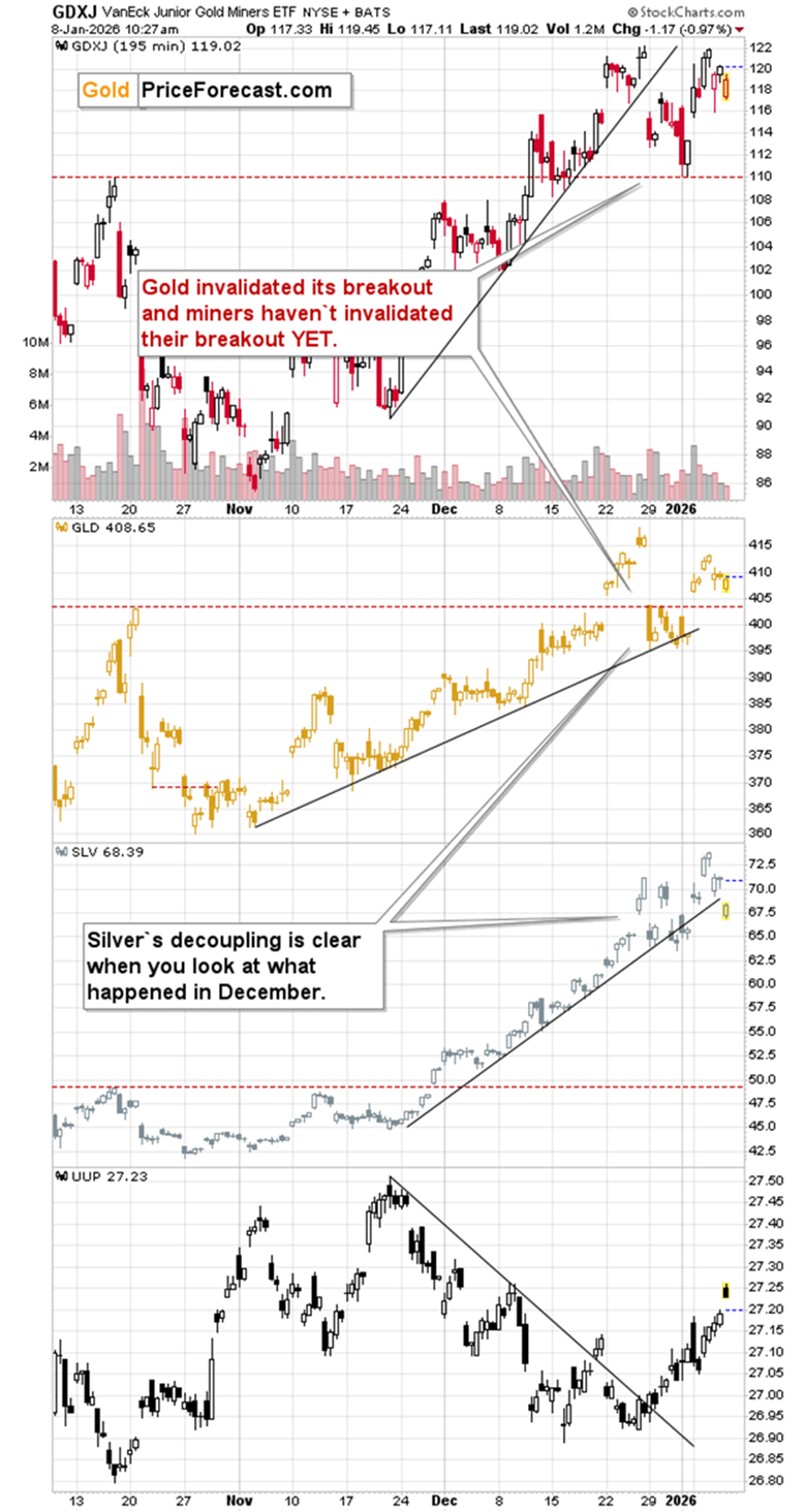 Yes, the precious metals sector managed to move higher despite that, as it has other drivers in addition to the USD Index, but please note what happened when the USD Index was launching its 2014-2015 and 2021 rallies. That’s when gold not only stopped rallying, but it actually declined.