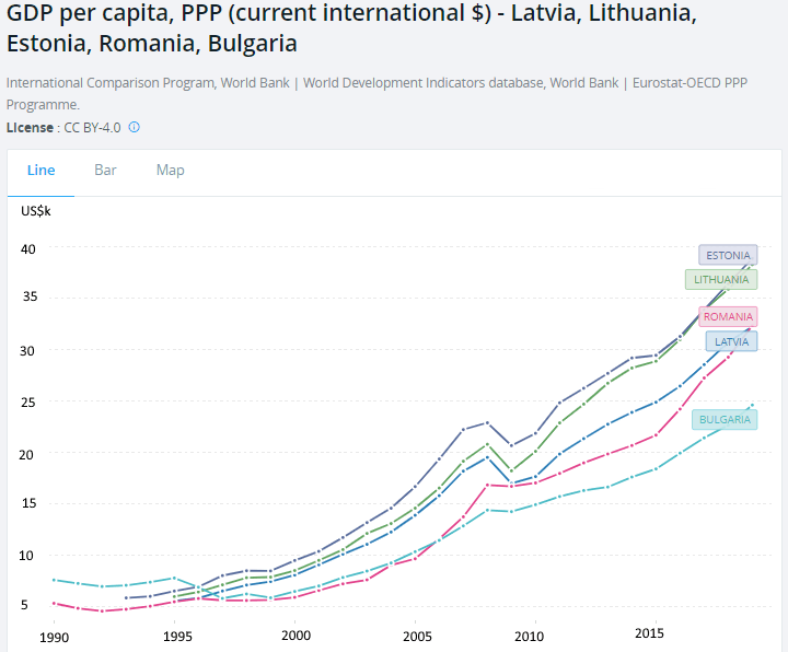 After 1990 the question arose as to how to reconvert the industrial sectors in the East Block to be able to survive and thrive in a market environment. In most countries, e.g. Poland, Czech Republic, Hungary etc., this was achieved by maintaining the currencies cheap such that the cost of labour was only a small fraction of the cost in the West. This created a natural barrier to the penetration of Western manufactures of consumer goods and allowed the manufacturing sectors the space to find their feet in the new environment. Generally this has been successful such that several decades on most of these countries are members of the EU and are achieving modest if unspectacular economic growth with an insertion in the EU markets based on lower costs.