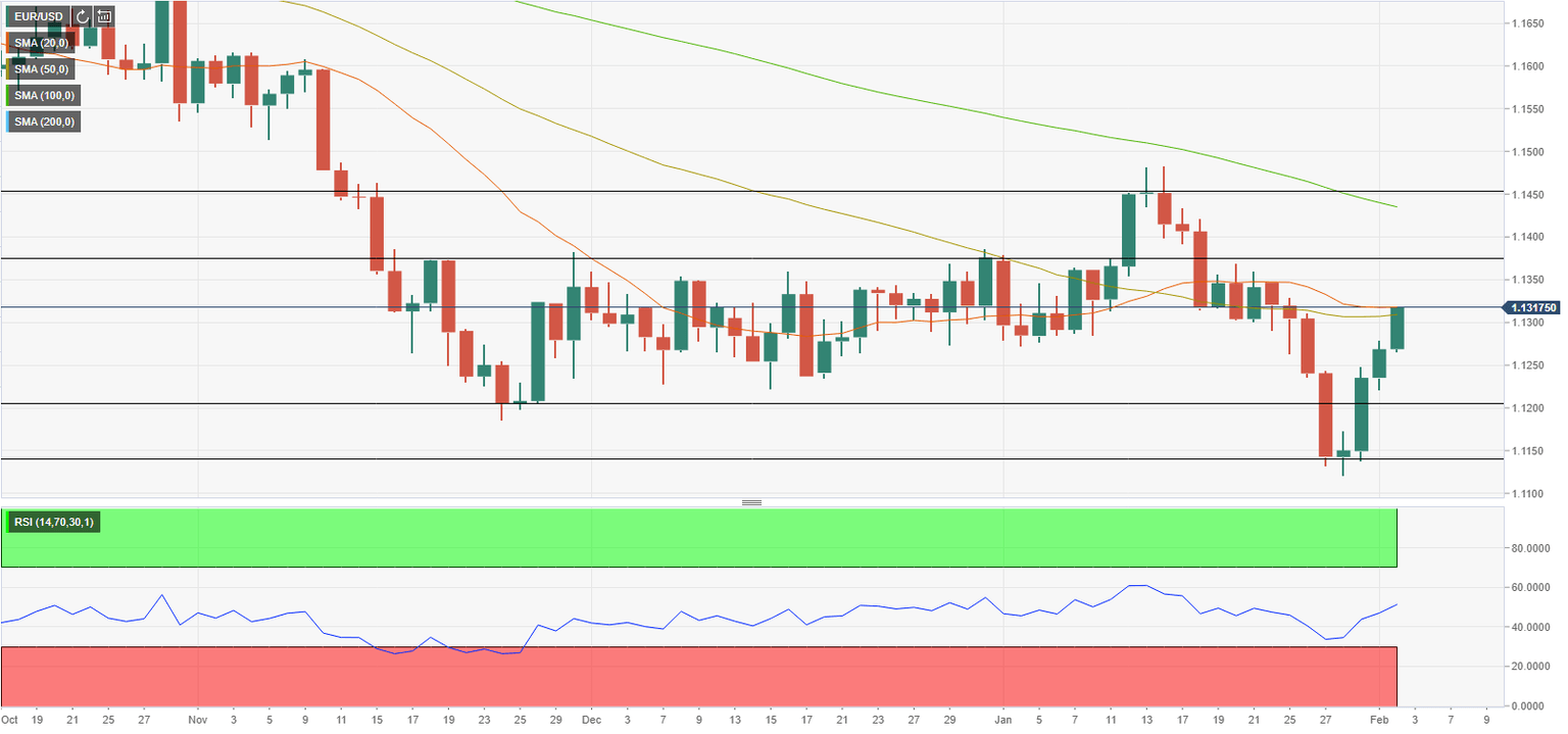 At the time of press, the pair was trading near 1.1300, where the 20-day and the 50-day SMAs are located. In case EUR/USD starts using these levels as support, it could target the next static resistance at 1.1375 ahead of 1.1430 (100-day SMA).