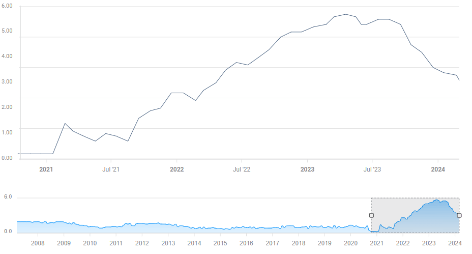 On the other hand, there are worries of a recession The Eurozone economies grew by a meager 0.5% in 2023, and uncertainty looms. Markets see that as a reason for the ECB to slash borrowing costs.