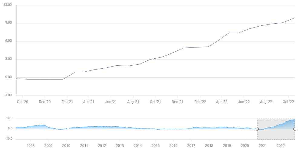 While Europe's rising prices are primarily driven by soaring energy costs, Core CPI has been too high as well. An increase in more-unionized Europe and an ongoing post-pandemic recovery have put underlying inflation at 4.8%. Both figures mean more rate rises.