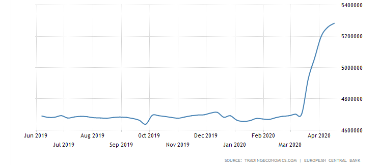 The ECB's balance sheet has been snowballing, and EUR/USD is far above the lows: